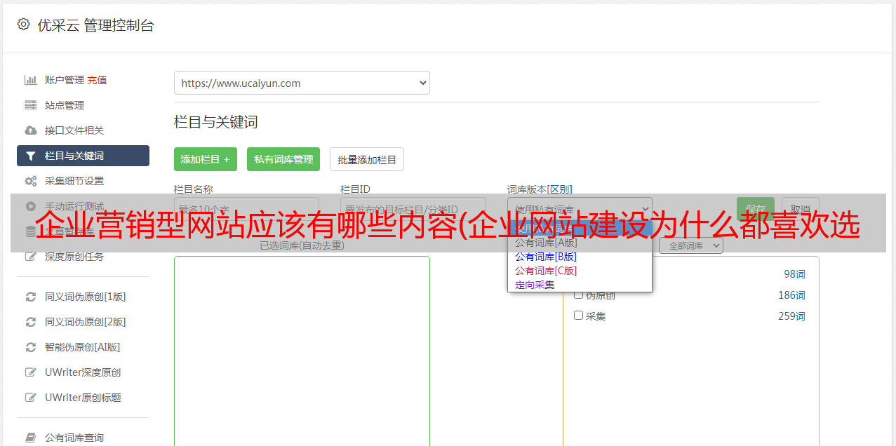 优采云 发布时间: 2022-03-07 13:23企业营销型网站应该有哪些内容(企业网站建设为什么都喜欢选择选择营销型网站?它对企业有什么帮助吗?)