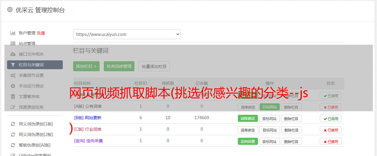 网页视频抓取脚本(挑选你感兴趣的分类--js )