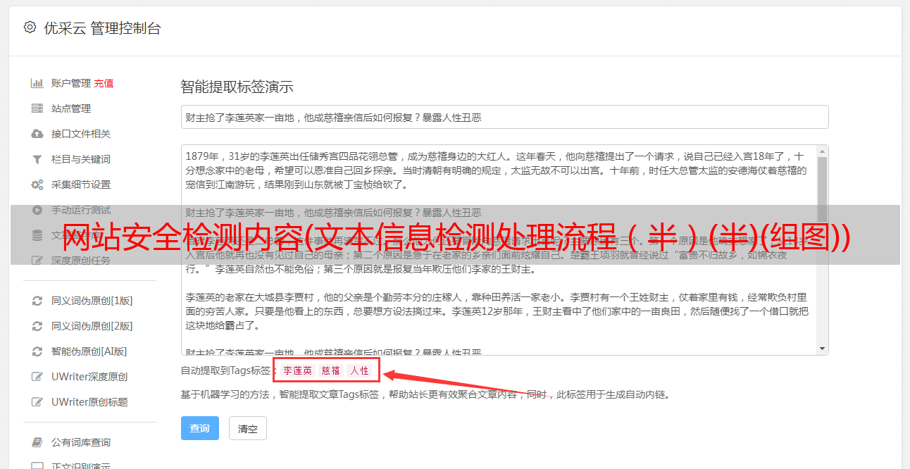 优采云 发布时间: 2022-03-08 01:20网站安全检测内容(文本信息检测处理流程(半)(半)(组图))