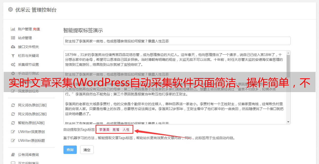 实时文章采集(WordPress自动采集软件页面简洁、操作简单,不需要掌握专业的规则配置 )