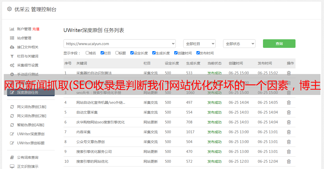 优采云 发布时间: 2022-03-08 03:09网页新闻抓取(SEO收录是判断我们网站优化好坏的一个因素,博主