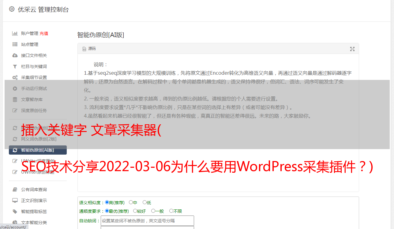 插入关键字 文章采集器( SEO技术分享2022-03-06为什么要用WordPress采集插件?)