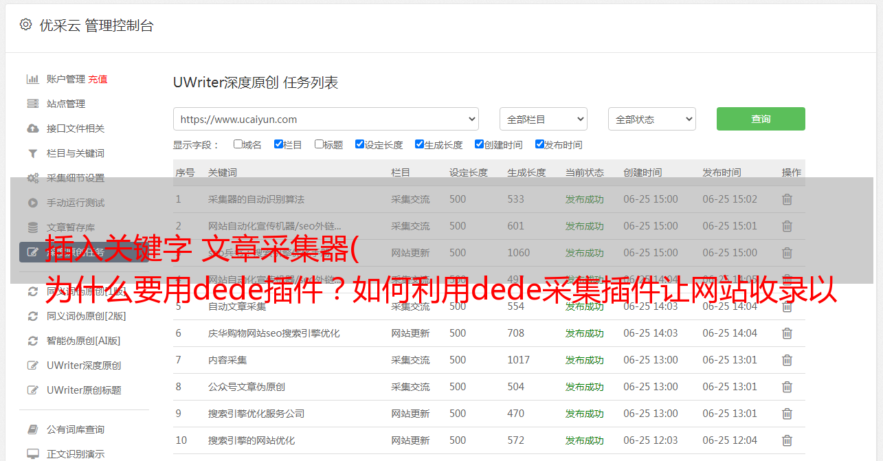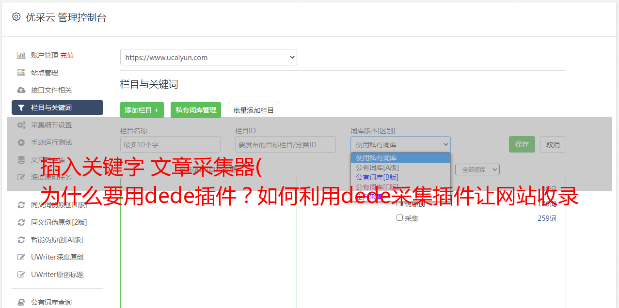 插入关键字 文章采集器( 为什么要用dede插件?如何利用dede采集插件让网站收录以及关键词排名)
