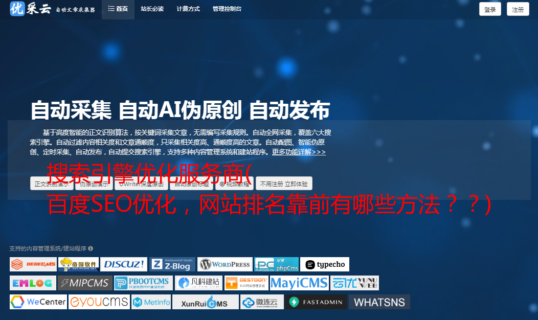 搜索引擎优化服务商( 百度SEO优化,网站排名靠前有哪些方法??)