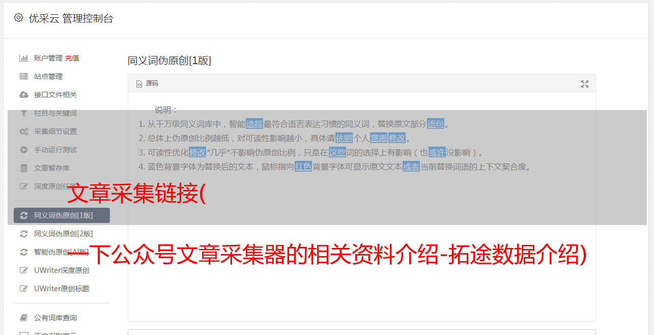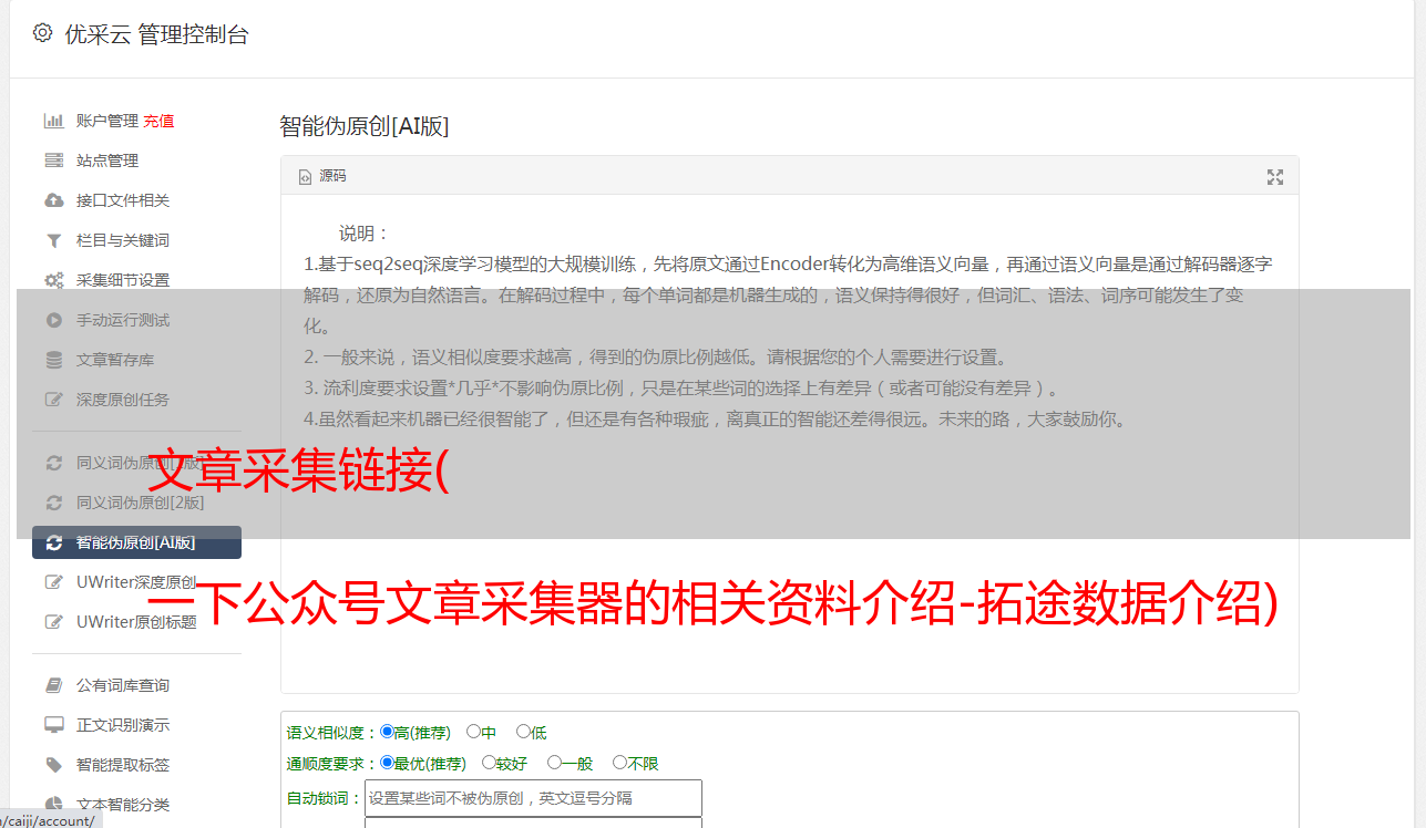 以上是拓图数据为您整理的公众号文章采集器的相关信息,希望能帮助您全面了解其使用方法。