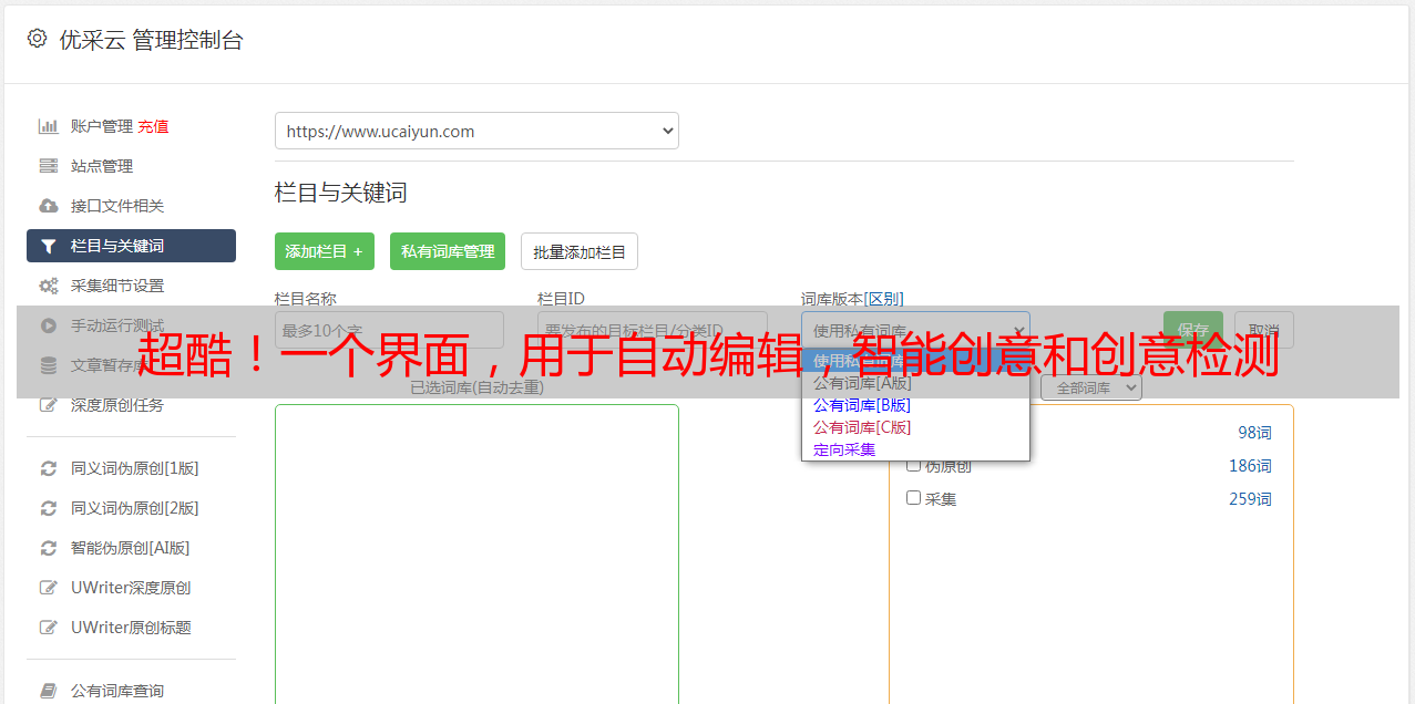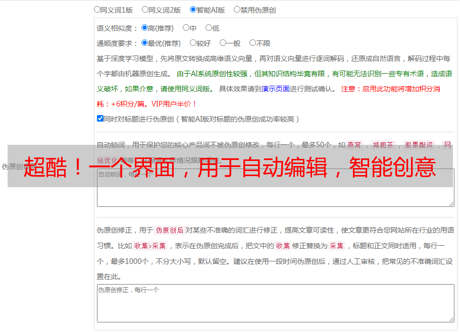 后来,为了满足增加网站内容收录率的需要,提供了一个聪明的原创功能.