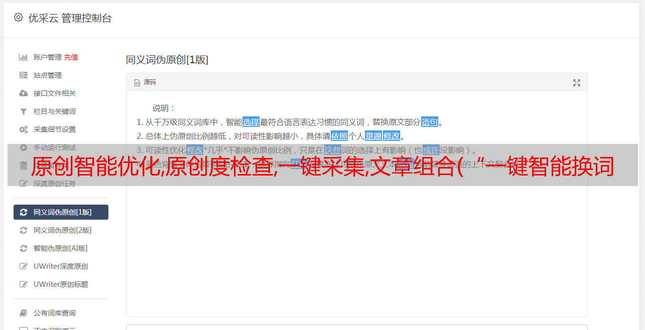 原创智能优化,原创度检查,一键采集,文章组合(“一键智能换词”因由系统取得新成效,你准备好了吗?)