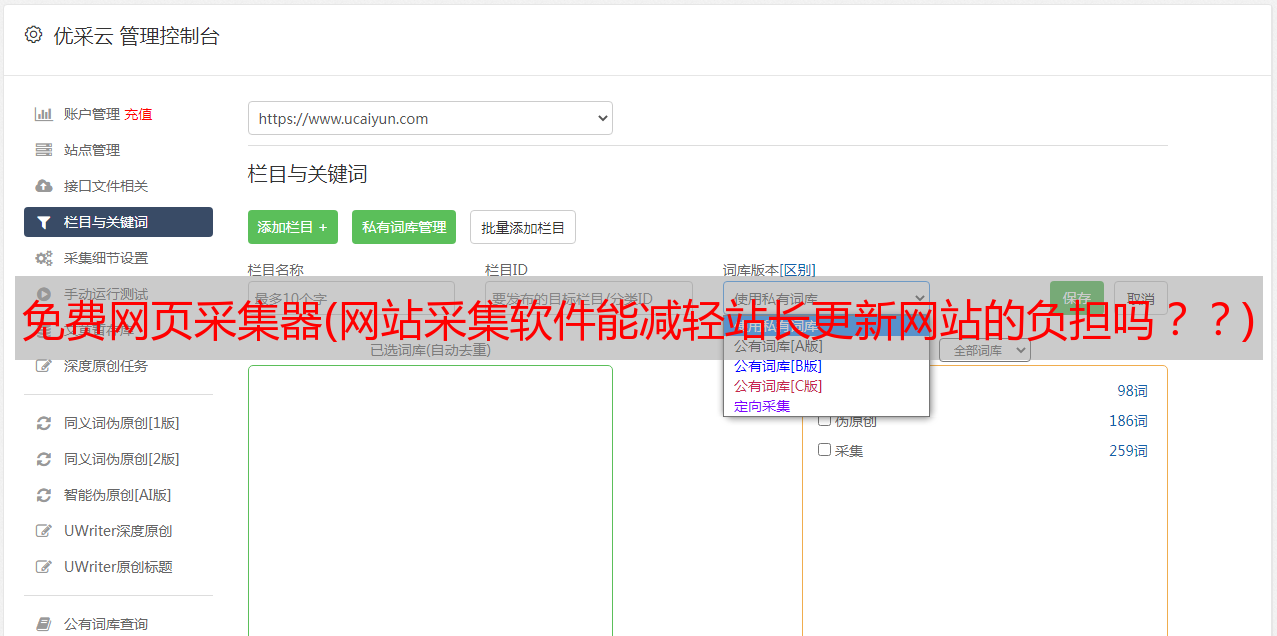 网站采集软件,每一个做SEO的站长都明白,网站的重点是更新文章的内容,但也是让每一个站长头疼的问题题。很多站长在网站的优化中更新了一段时间文章经常觉得很累,对应网站更新文章,不知道从哪里弄,慢慢地这会导致更新少,网站优化停滞。网站采集软件可以减轻站长更新网站的负担,从而提高网站SEO优化的效率。