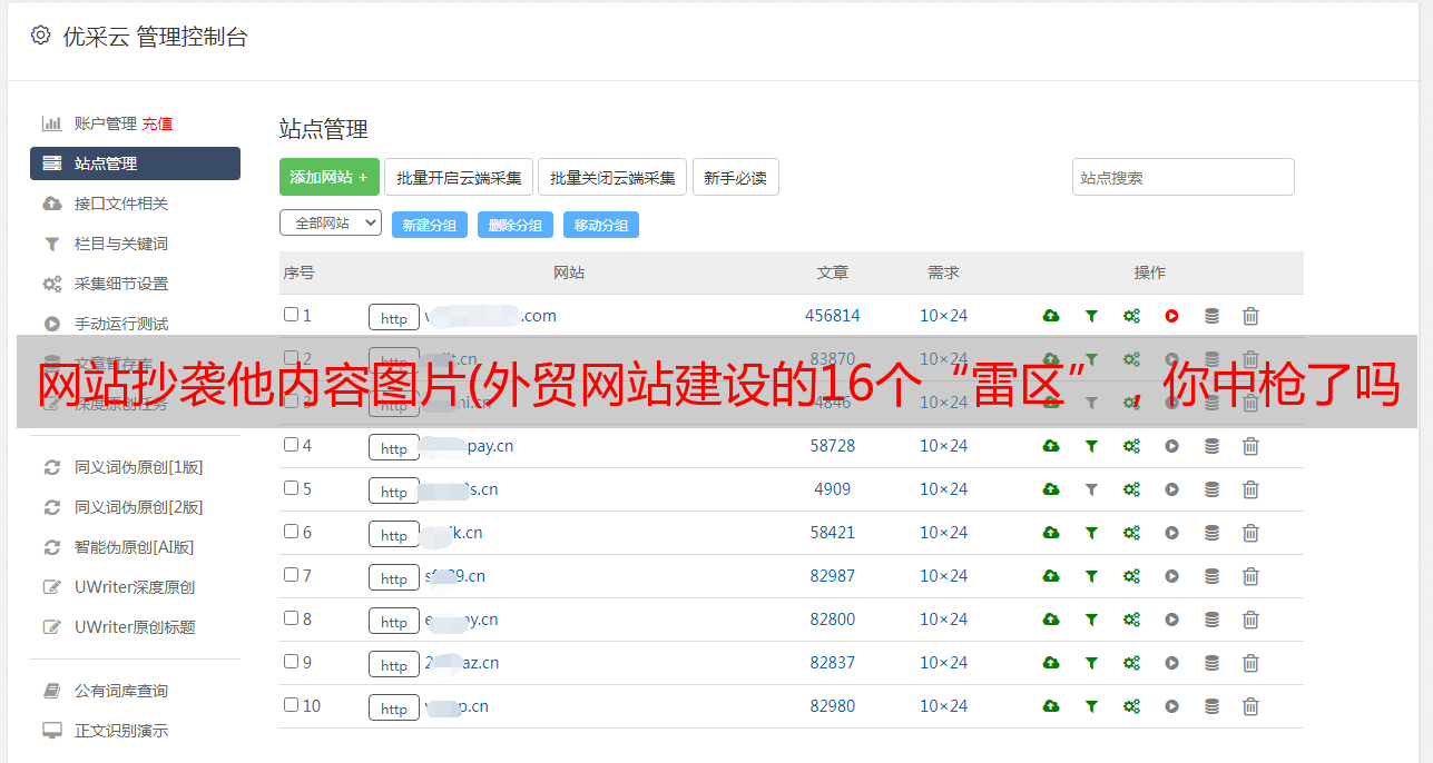 优采云 发布时间: 2022-03-08 21:15网站抄袭他内容图片(外贸网站建设的16个“雷区”,你中*敏*感*词*了吗?)