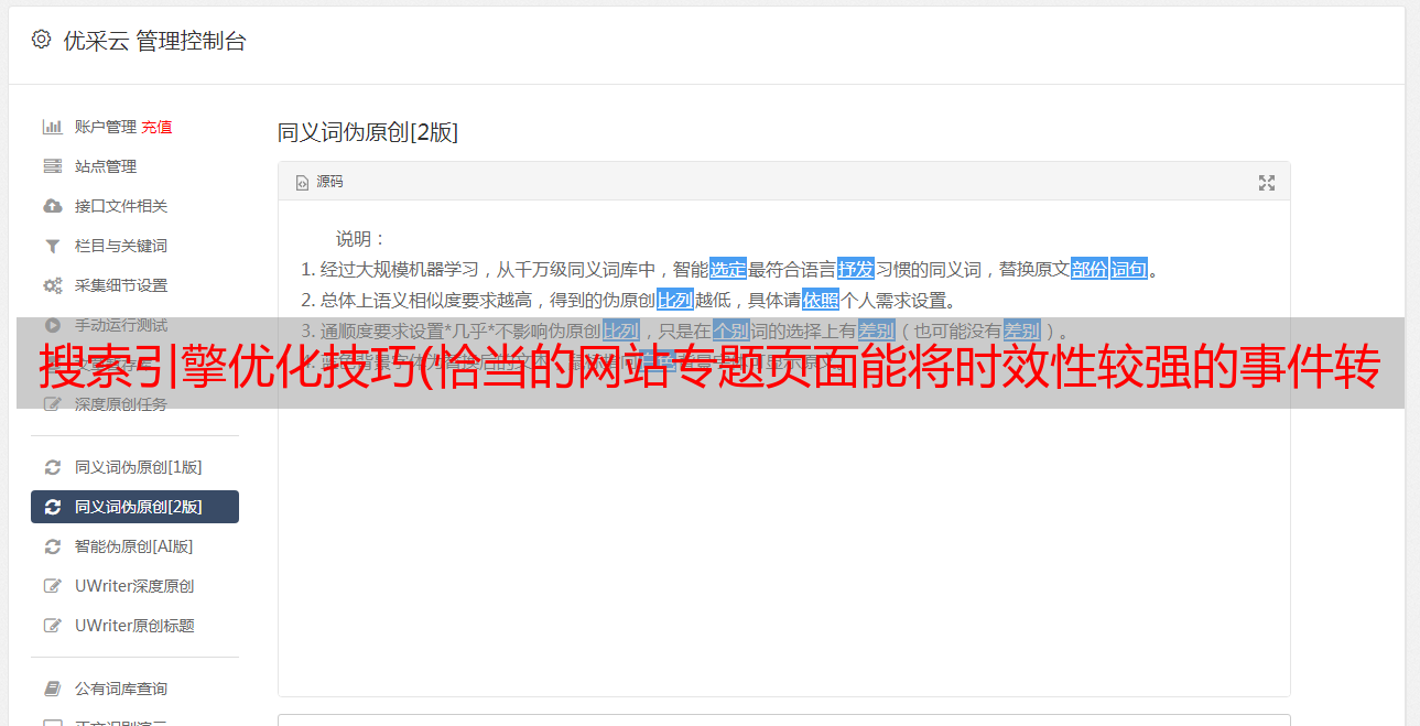 优采云 发布时间: 2022-03-09 00:08搜索引擎优化技巧(恰当的网站专题页面能将时效性较强的事件转化为自己网站的流量)