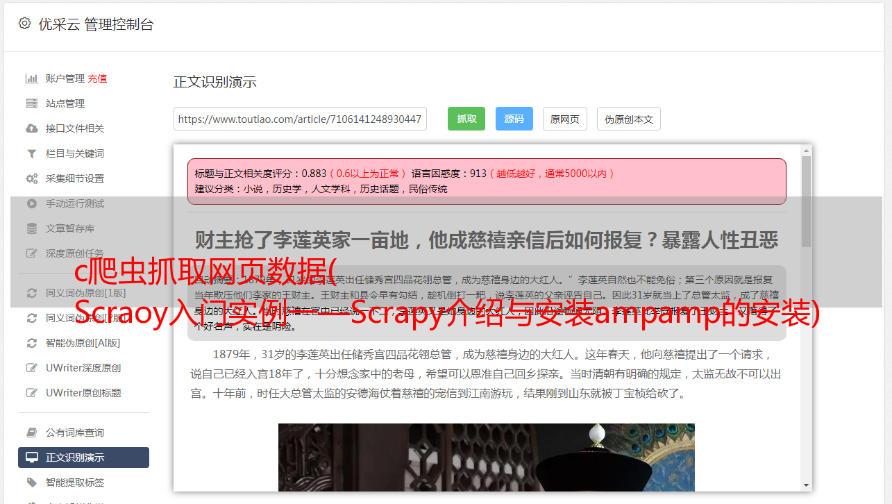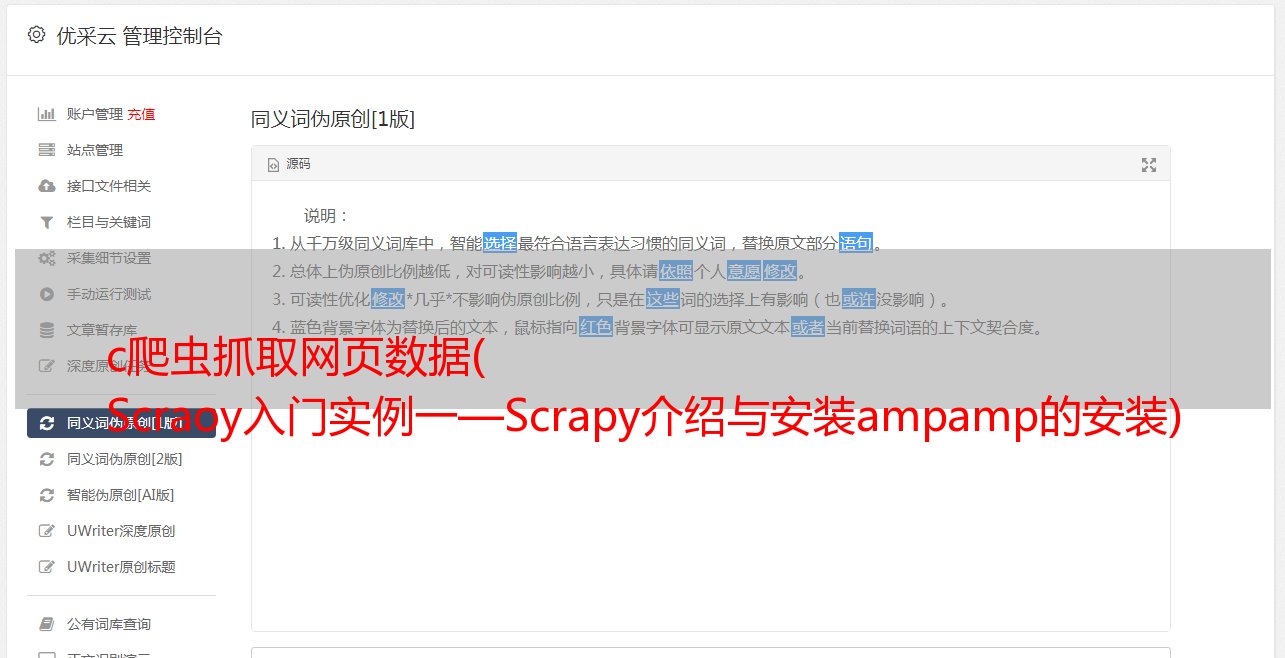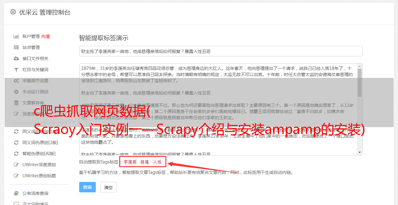 至此,使用Scrapy抓取网页内容,并对抓取到的内容进行清理和处理的实验已经完成。要求熟悉并使用此过程中的代码和操作,不要在网上搜索和消化。吸收它并记住它,这是学习知识的真正方法,而不仅仅是画一个勺子。