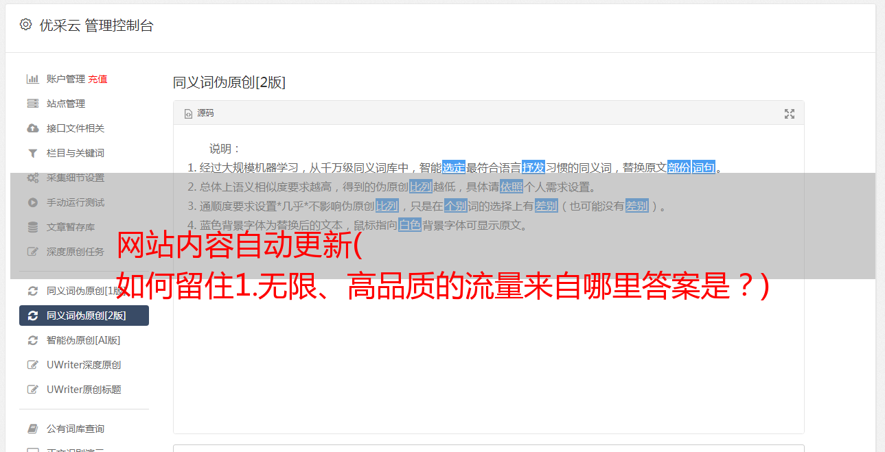 网站内容自动更新( 如何留住1.无限、高品质的流量来自哪里答案是?)
