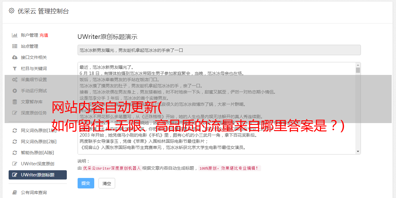有一个 网站 可以“自动并持续更新 原创 内容”并建立一些有价值的反向链接。