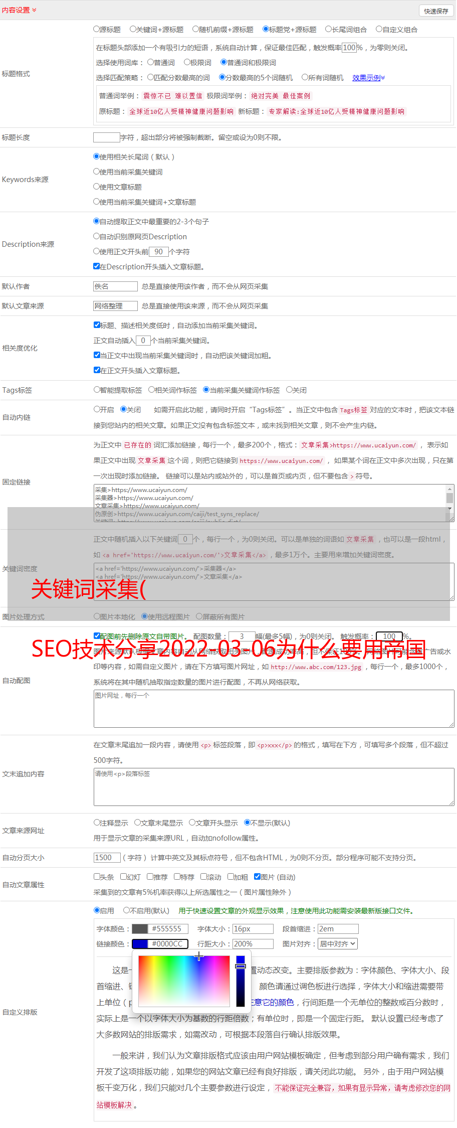 5、强大的SEO功能(自动图片放置/插入内外链接/标题和文章前后插入内容/标题关键词与内容一致关键词/随机插入图片/随机属性添加页面原创度)