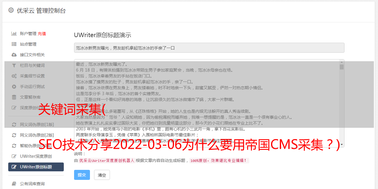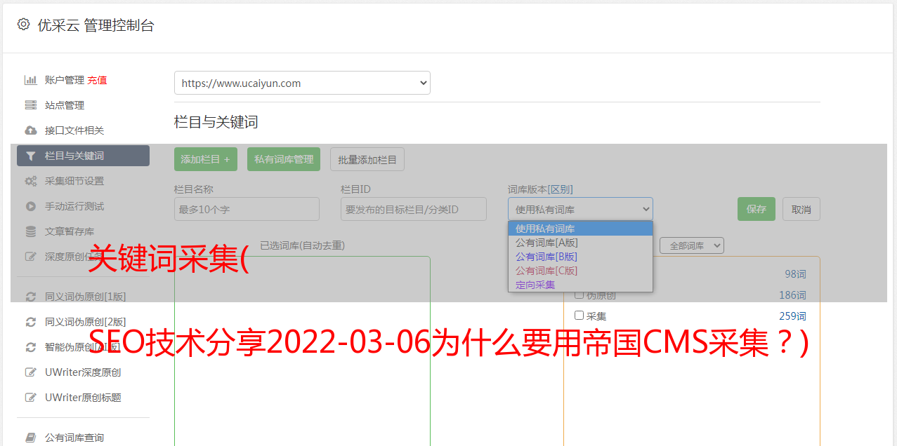 优采云 发布时间: 2022-03-09 06:09SEO技术分享2022-03-06为什么要用帝国CMS采集?)
