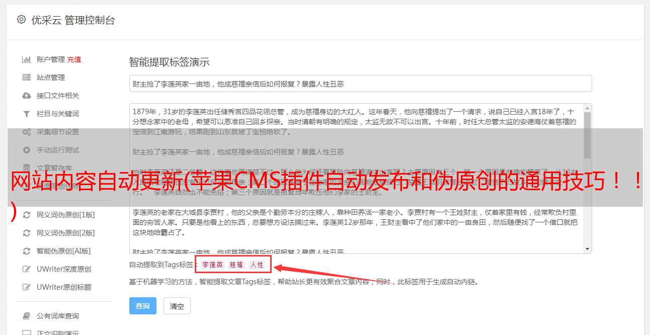 网站内容自动更新(苹果CMS插件自动发布和伪原创的通用技巧!! )