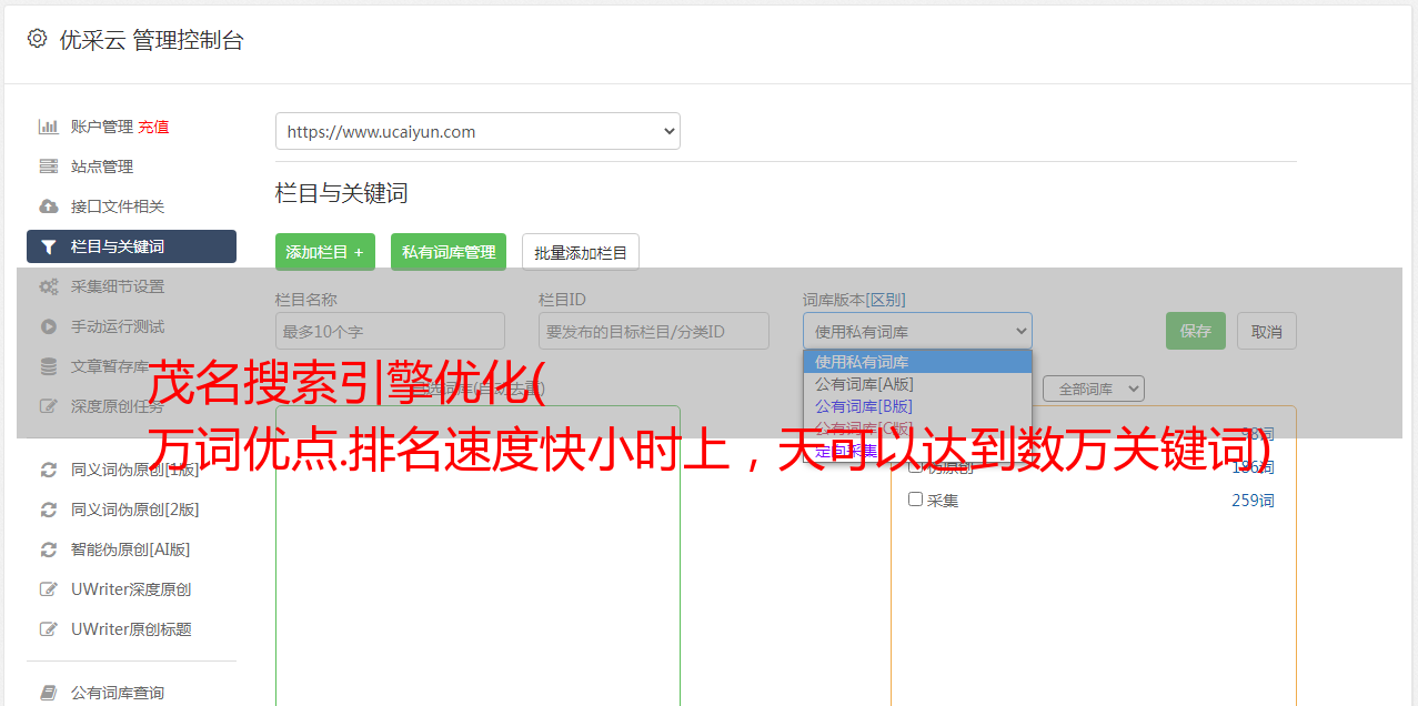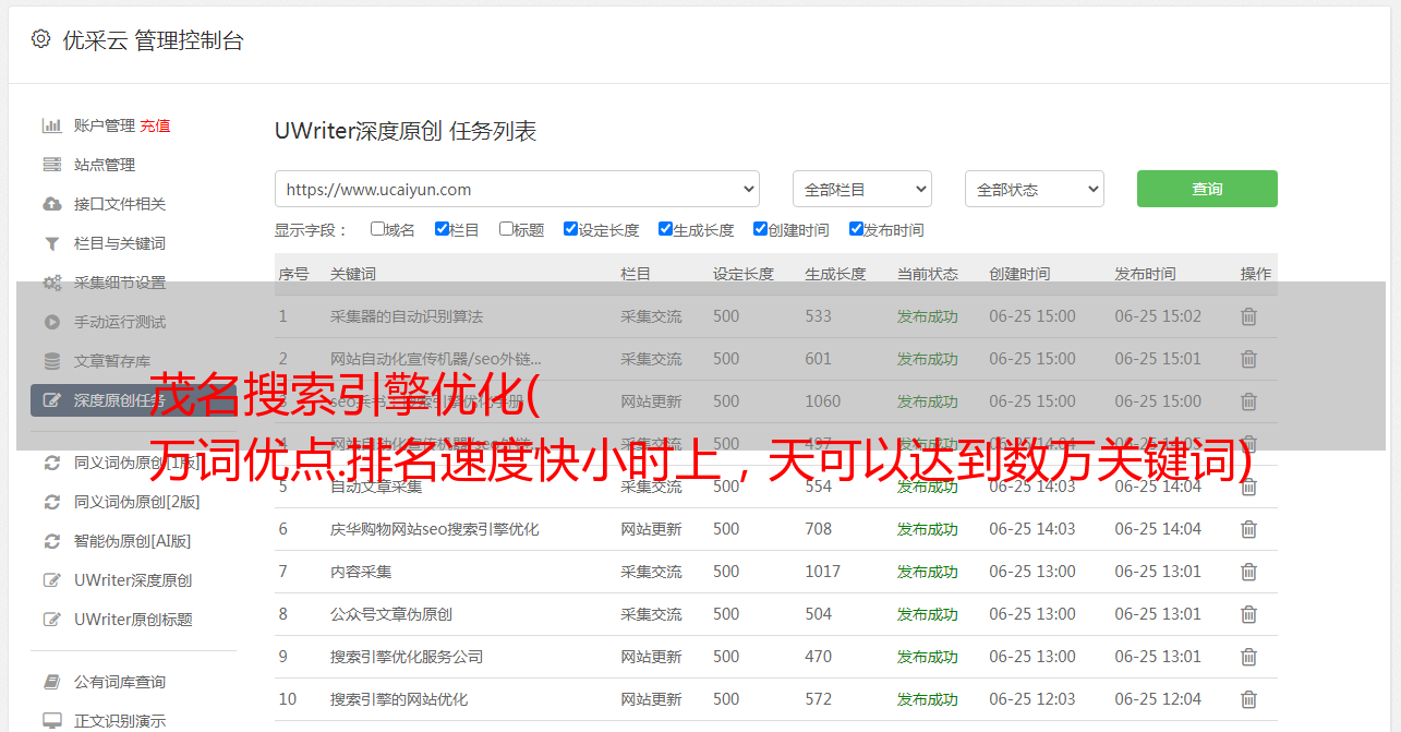 万辞是指目前使用的智能推广系统,批量发布可以实现大量页面,可以实现大量关键词快速排名,自然排名中出现一个词的多个位置的相关搜索引擎。