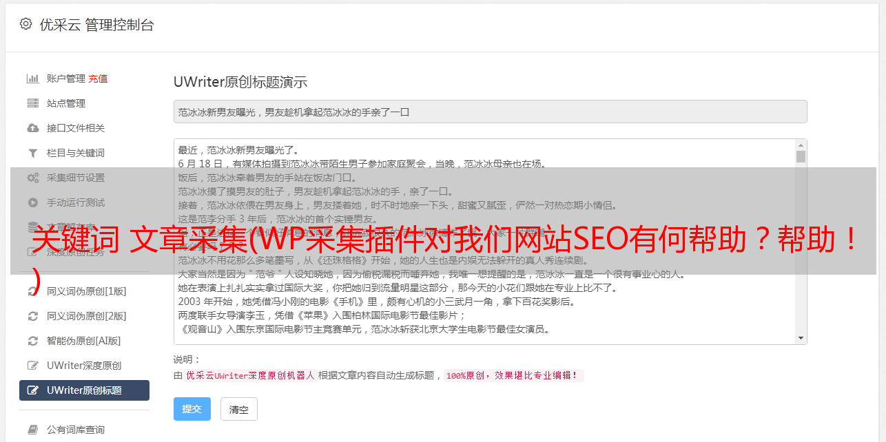 关键词 文章采集(WP采集插件对我们网站SEO有何帮助?帮助! )