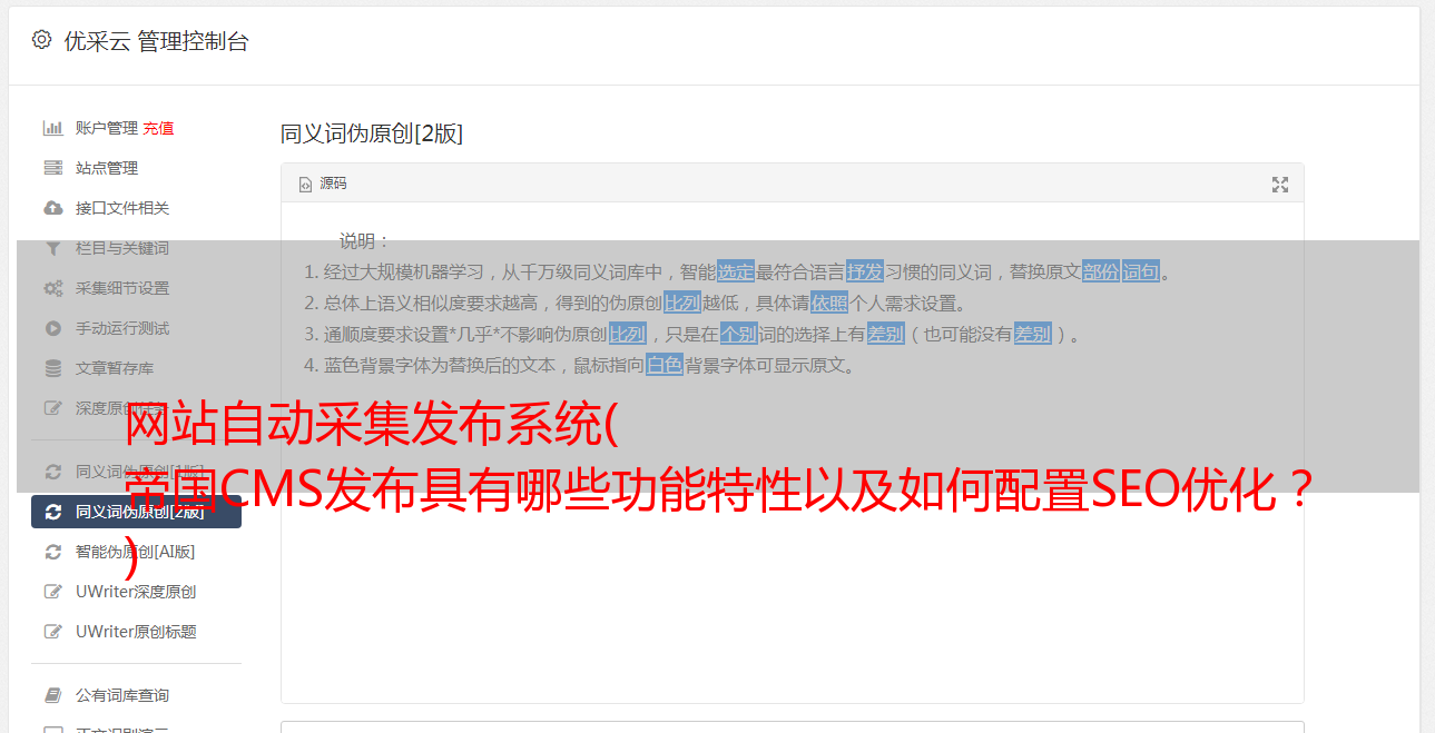 Imperialcms 版本有哪些功能以及如何配置SEO优化: