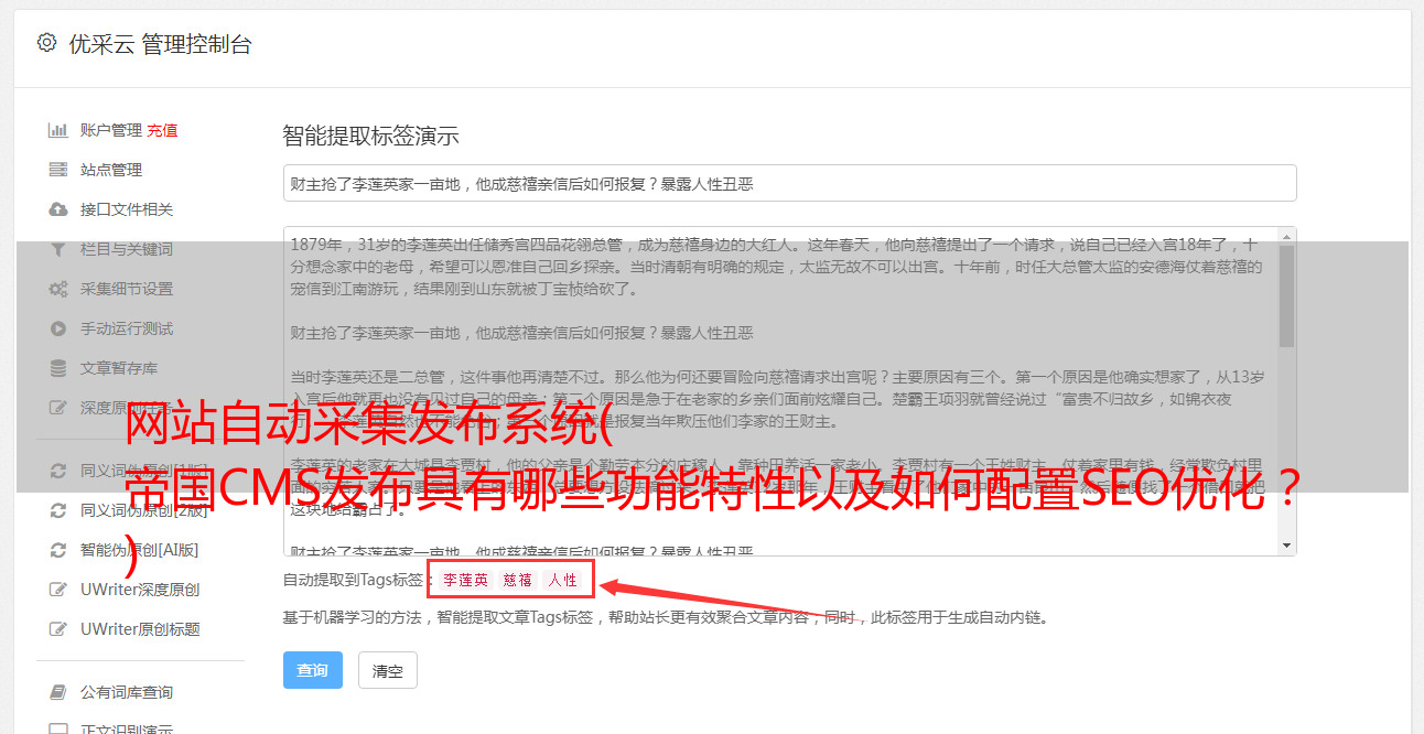 网站自动采集发布系统( 帝国CMS发布具有哪些功能特性以及如何配置SEO优化? )