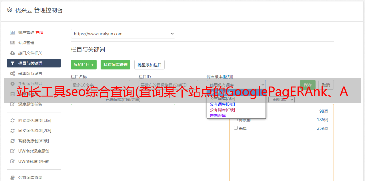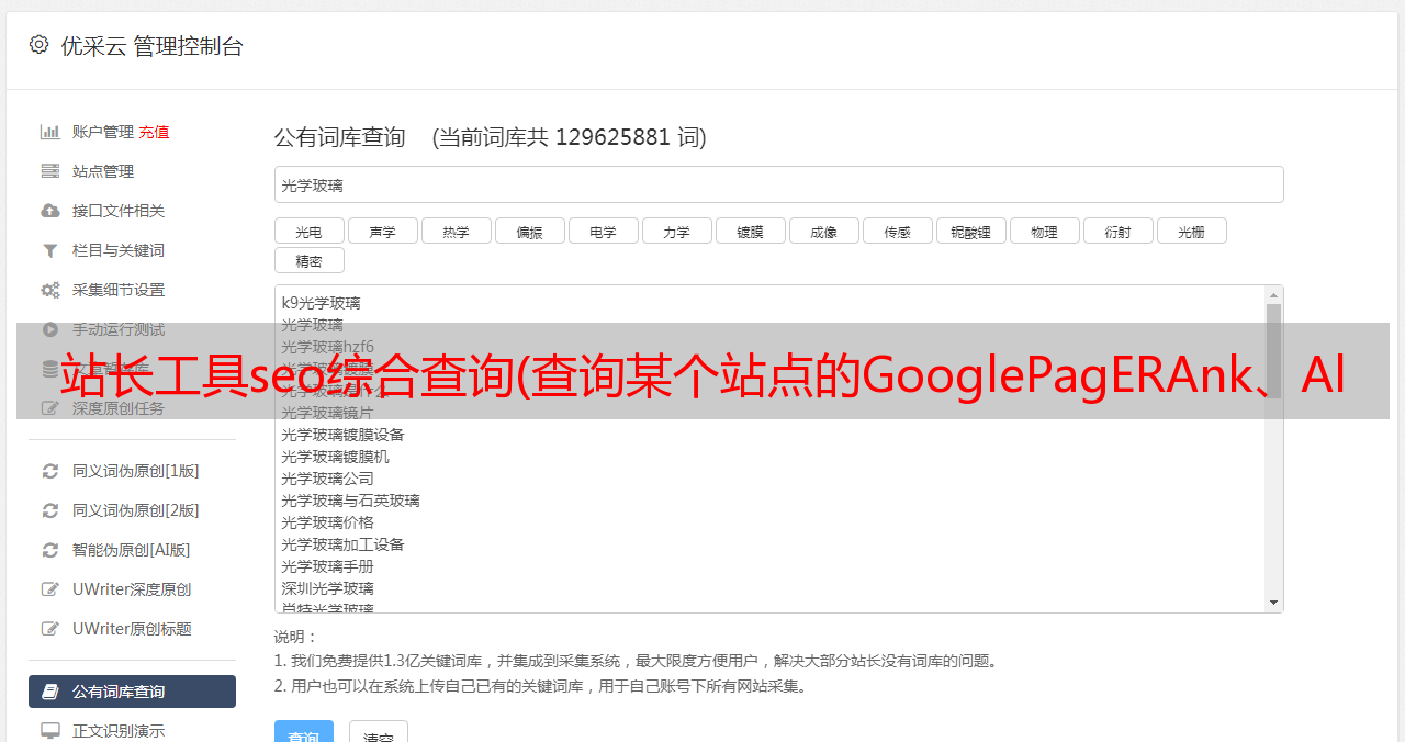 优采云 发布时间: 2022-03-09 15:22站长工具seo综合查询(查询某个站点的GooglePagERAnk、Alexa世界排名、Sogou指数、中国网站排名)