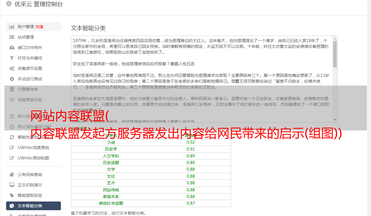 优采云 发布时间: 2022-03-09 21:09网站内容联盟(