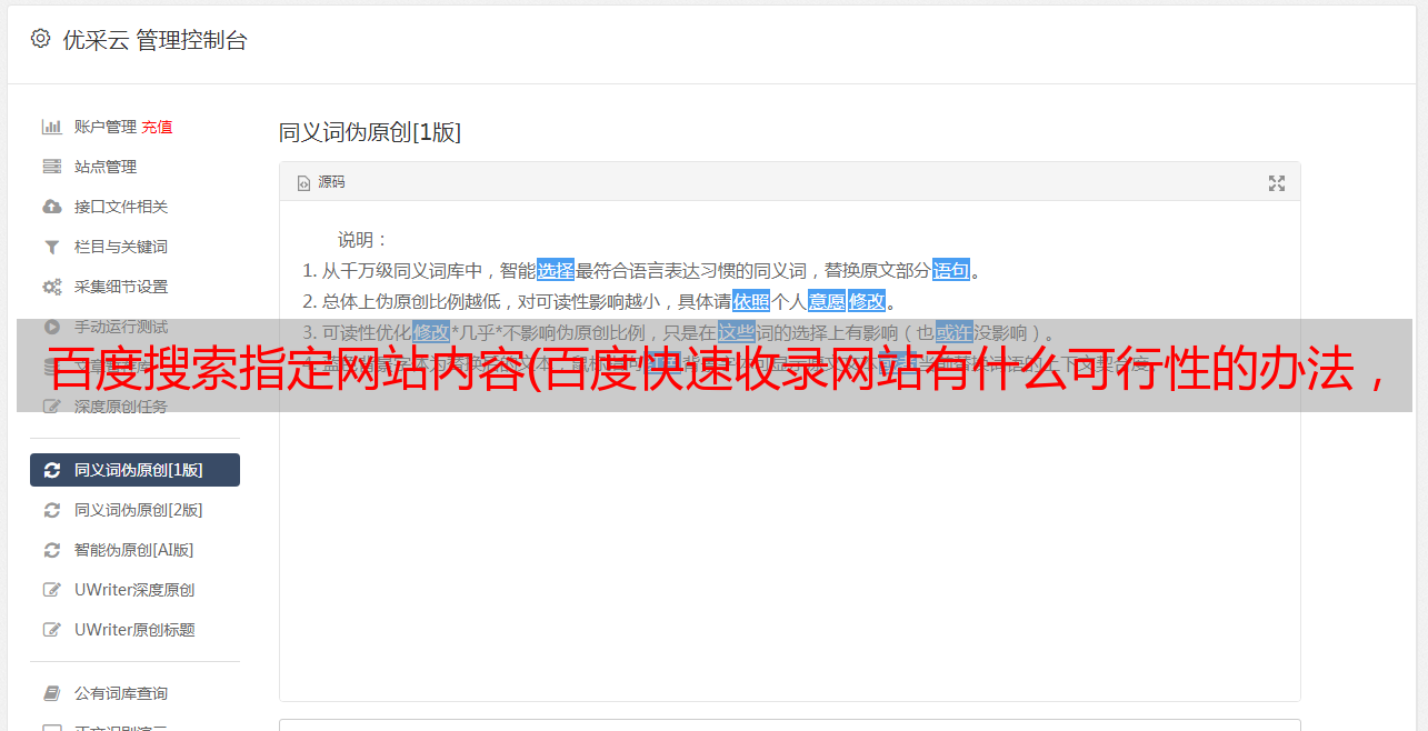 优采云 发布时间: 2022-03-10 08:01百度搜索指定网站内容(百度快速收录网站有什么可行性的办法,如何查询百度的收录情况)