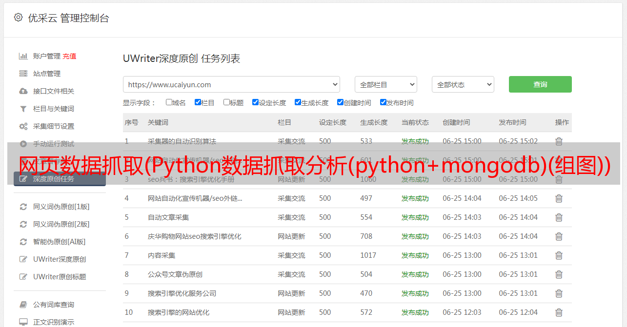 优采云 发布时间: 2022-03-10 14:13网页数据抓取(Python数据抓取分析(python+mongodb)(组图))