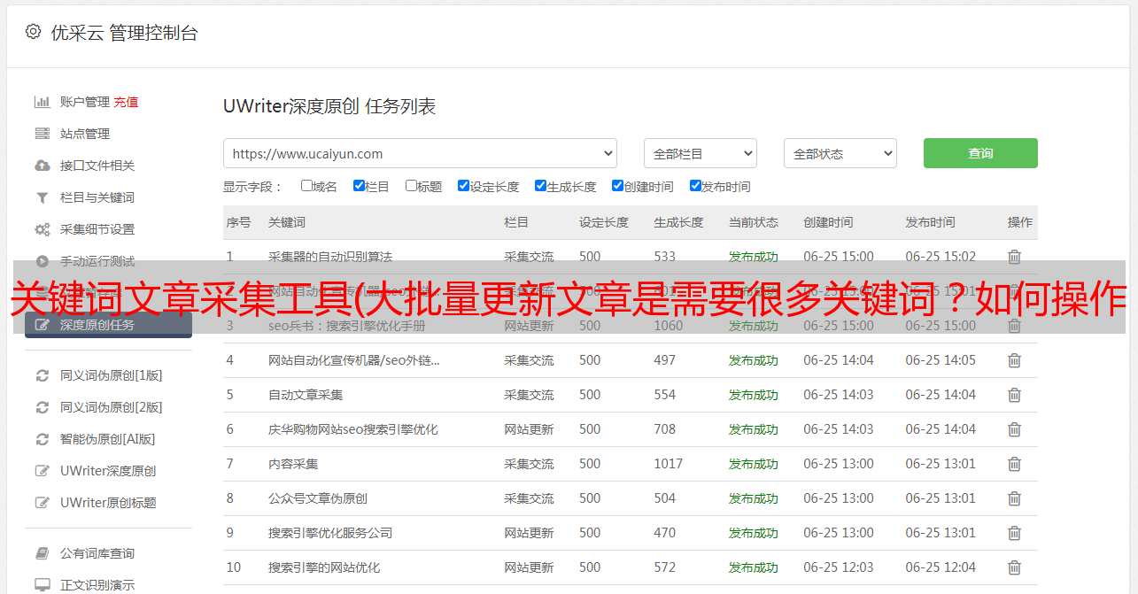 优采云 发布时间: 2022-03-11 02:01关键词文章采集工具(大批量更新文章是需要很多关键词?如何操作?(图))