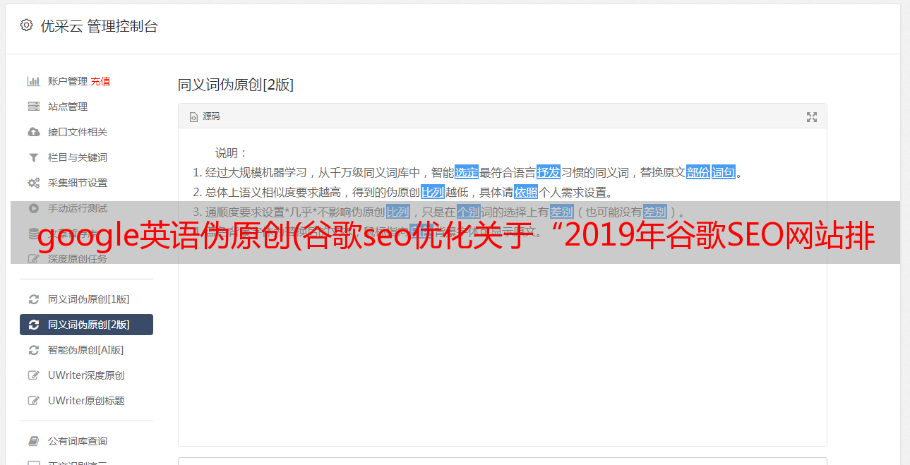 优采云 发布时间: 2022-03-11 02:16google英语伪原创(谷歌seo优化关于“2019年谷歌SEO网站排名优化新思路”)