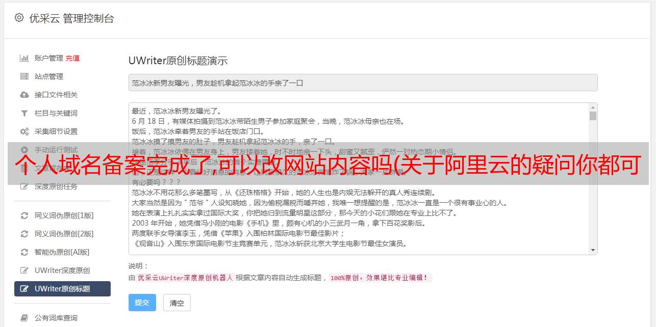 优采云 发布时间: 2022-03-11 03:18个人域名备案完成了,可以改网站内容吗(关于阿里云的疑问你都可以在这里找到答案(组图))