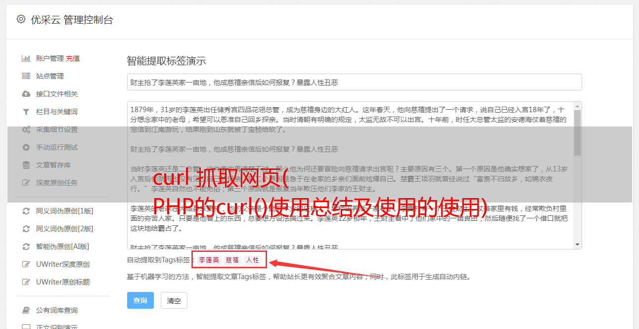 curl 抓取网页( PHP的curl()使用总结及使用的使用)