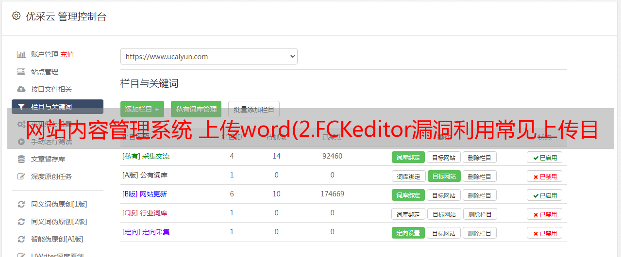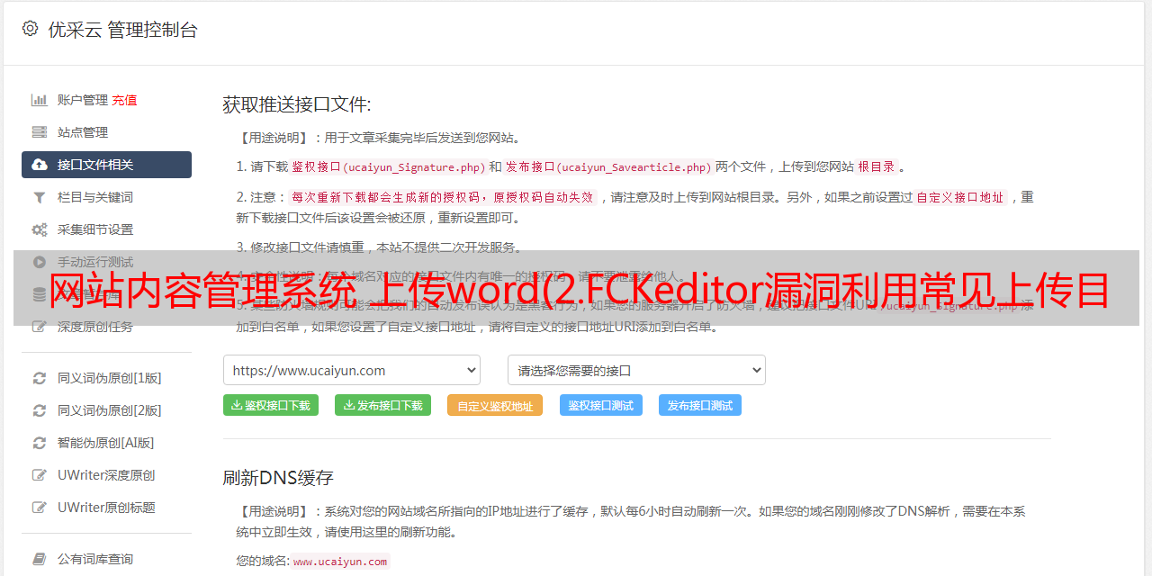优采云 发布时间: 2022-03-11 06:08网站内容管理系统 上传word(2.FCKeditor漏洞利用常见上传目录:绕过方法在高版本fck)