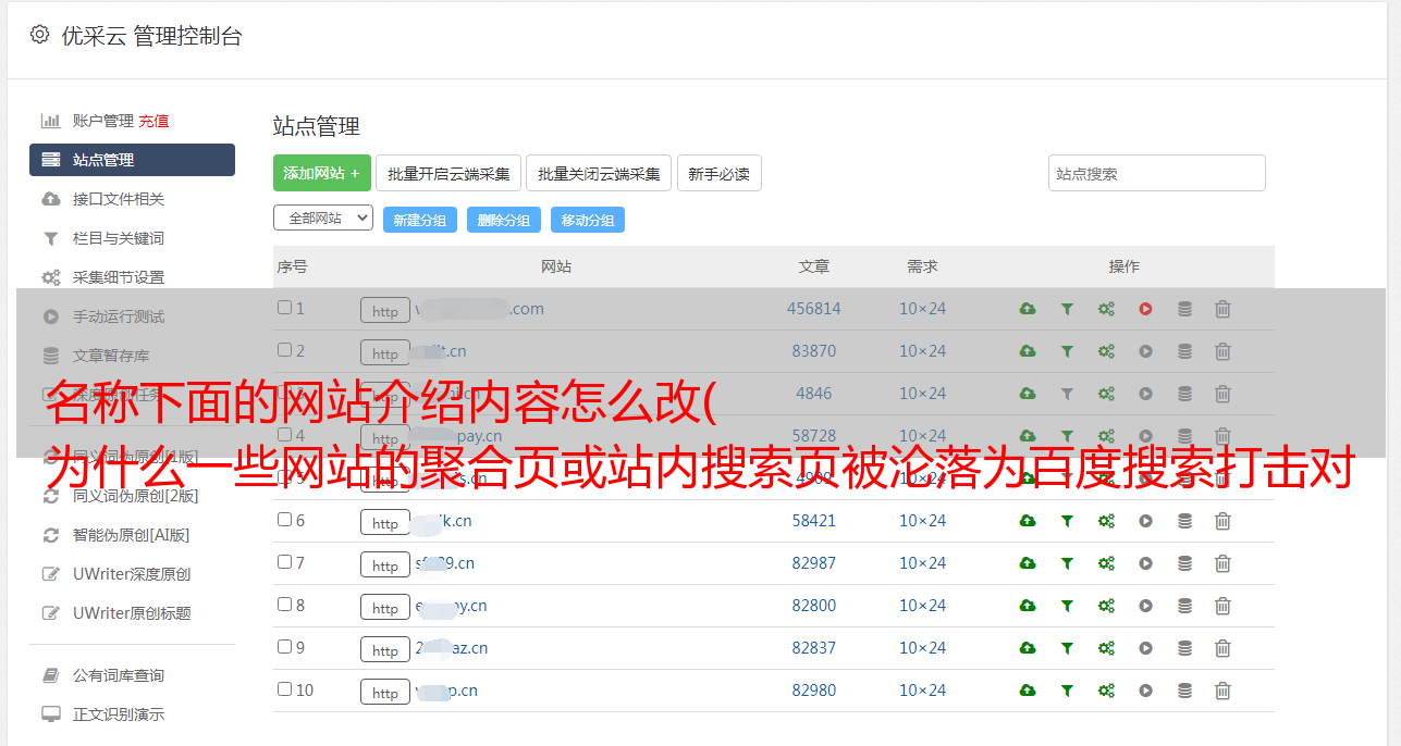 名称下面的网站介绍内容怎么改( 为什么一些网站的聚合页或站内搜索页被沦落为百度搜索打击对象?)
