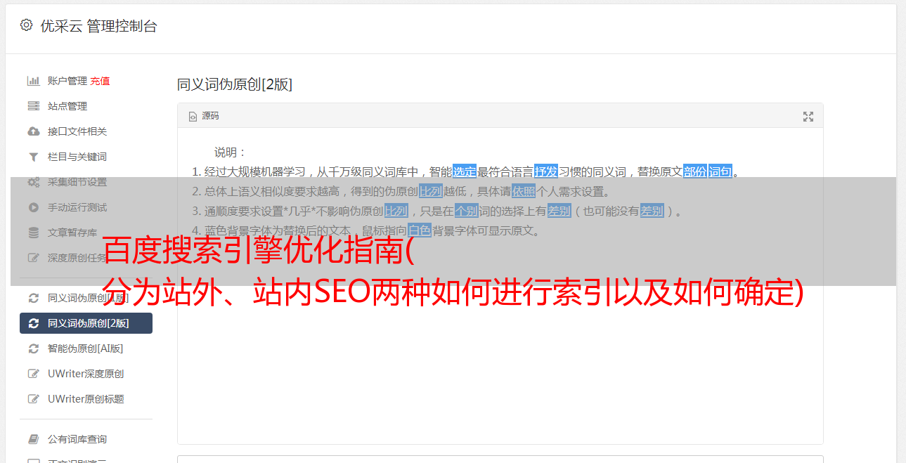 百度搜索引擎优化指南( 分为站外、站内SEO两种如何进行索引以及如何确定)
