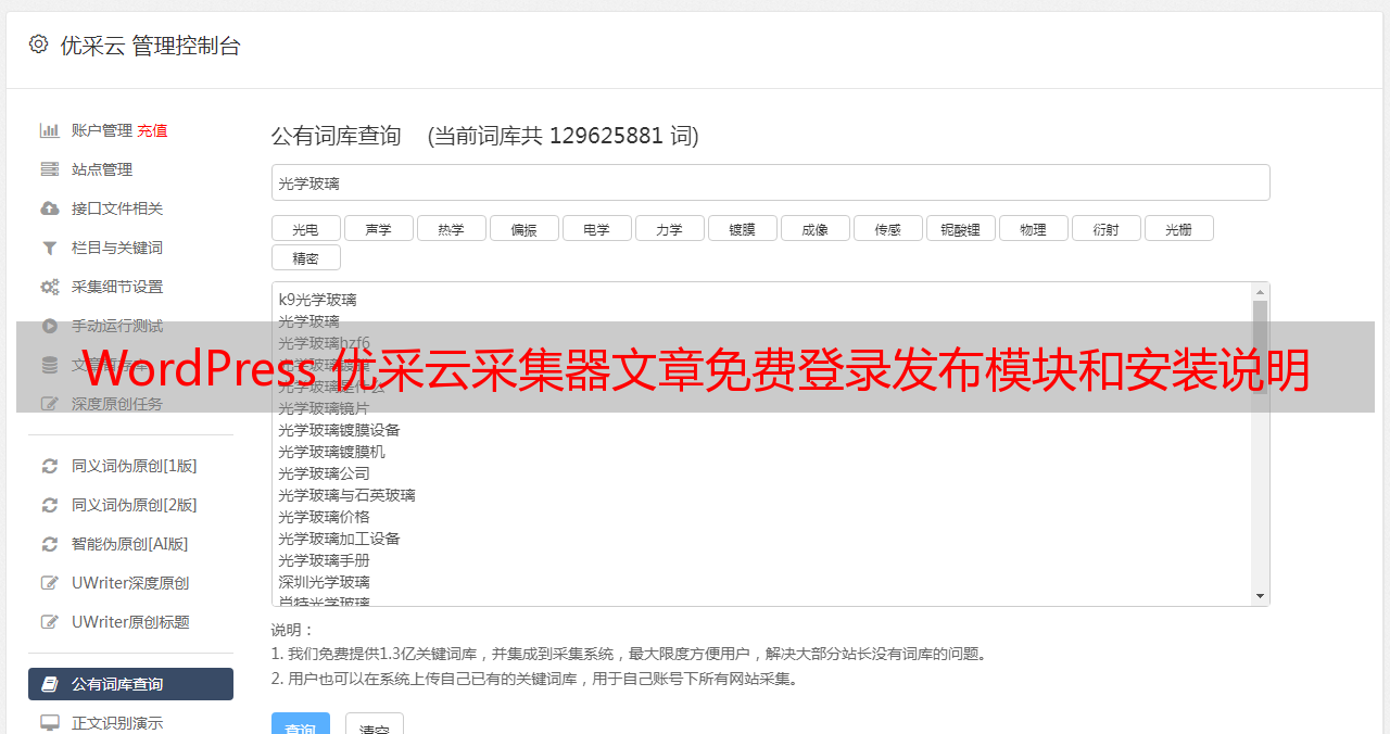 WordPress 优采云采集器文章免费登录发布模块和安装说明