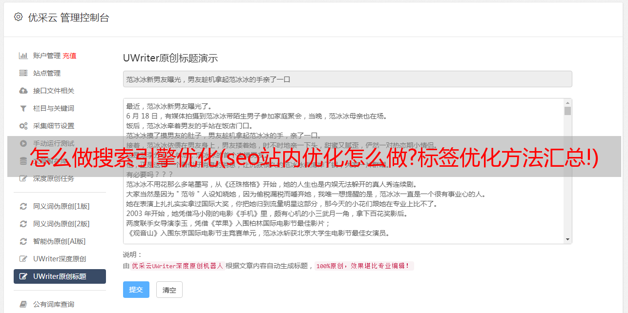 优采云 发布时间: 2022-03-11 15:13怎么做搜索引擎优化(seo站内优化怎么做?标签优化方法汇总!)