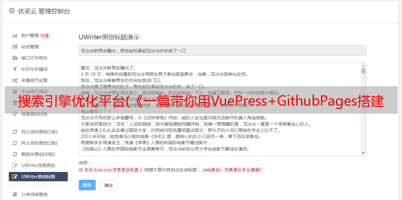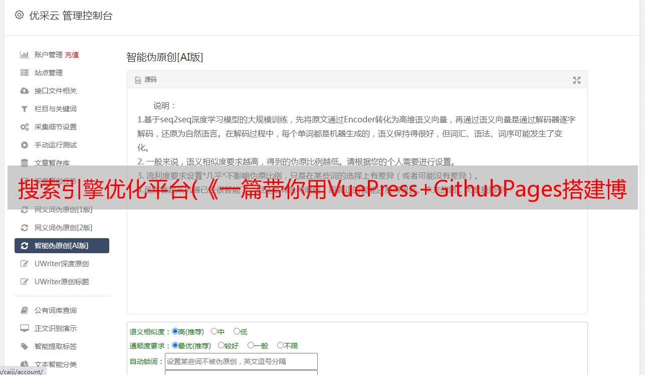 优采云 发布时间: 2022-03-11 17:22搜索引擎优化平台(《一篇带你用VuePress+GithubPages搭建博客》SEO优化)