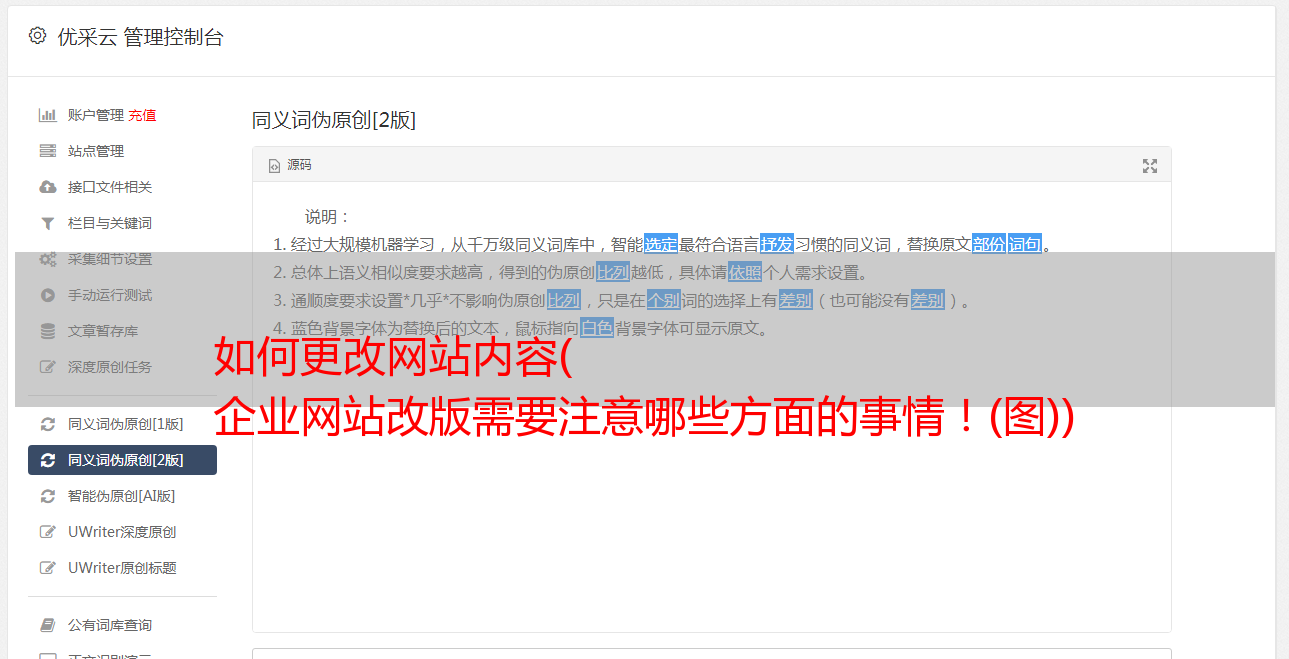 优采云 发布时间: 2022-03-11 23:07如何更改网站内容(