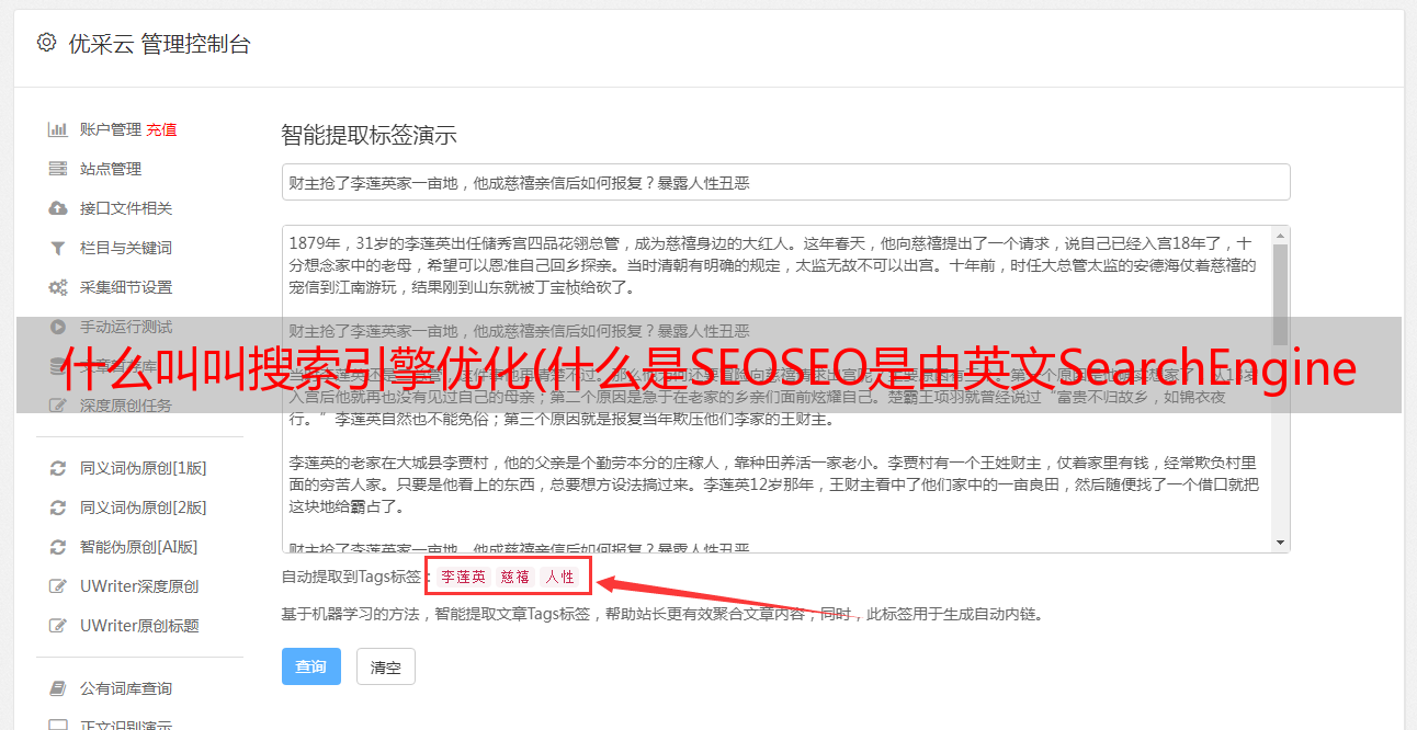 优采云 发布时间: 2022-03-11 23:16什么叫叫搜索引擎优化(什么是SEOSEO是由英文SearchEngine缩写而来那些事)