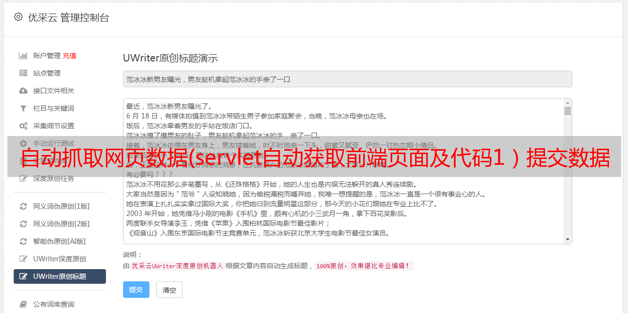 优采云 发布时间: 2022-03-12 00:14自动抓取网页数据(servlet自动获取前端页面及代码1)提交数据介绍)