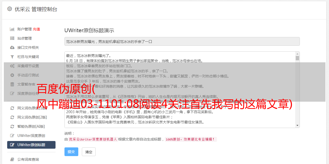 优采云 发布时间: 2022-03-12 01:29百度伪原创(