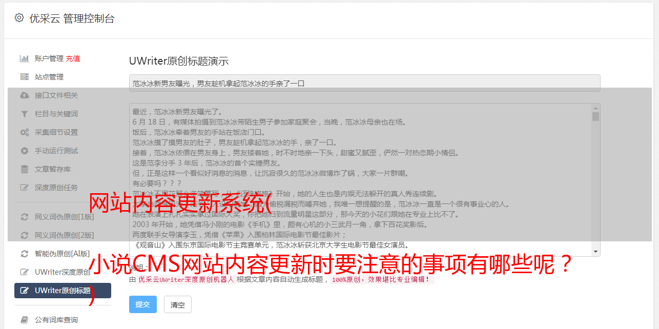 网站内容更新系统( 小说CMS网站内容更新时要注意的事项有哪些呢? )