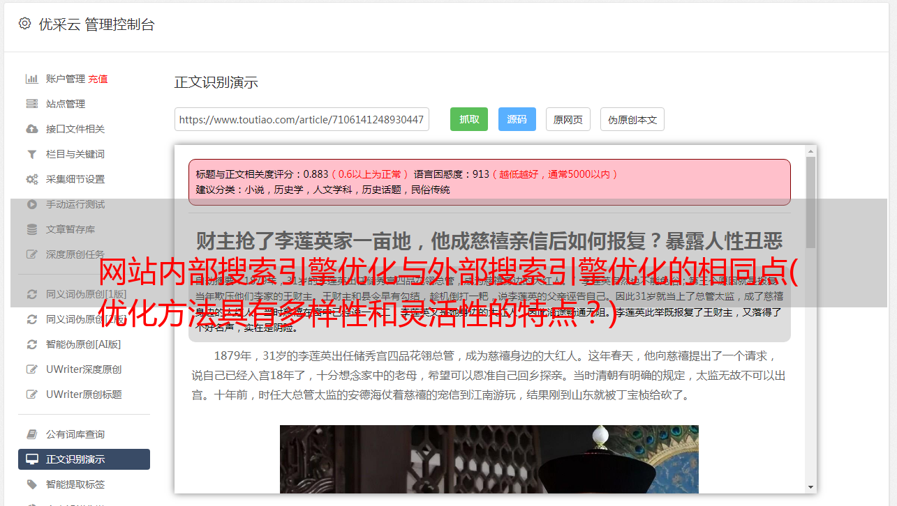 优采云 发布时间: 2022-03-12 08:05网站内部搜索引擎优化与外部搜索引擎优化的相同点(