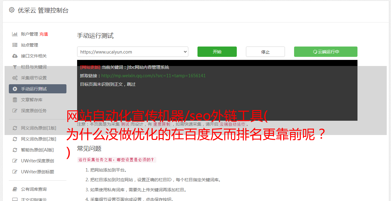 优采云 发布时间: 2022-03-12 09:10网站自动化宣传机器/seo外链工具(