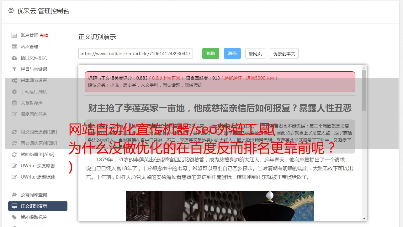 网站自动化宣传机器/seo外链工具( 为什么没做优化的在百度反而排名更靠前呢? )