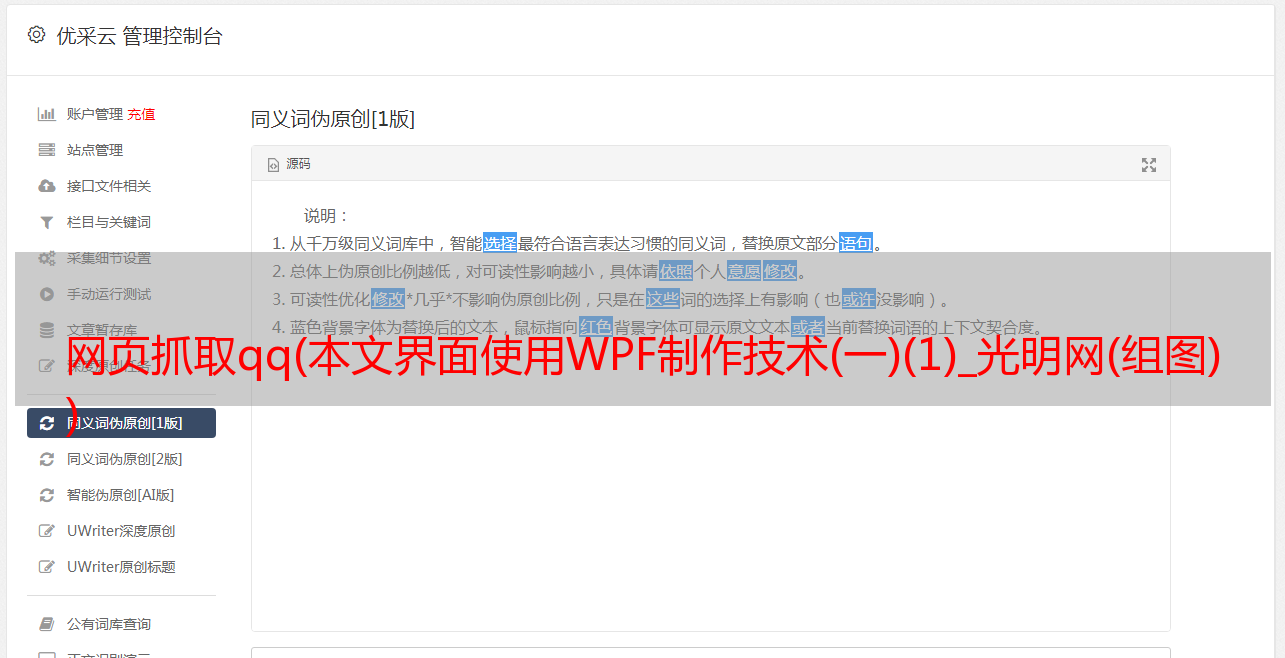 优采云 发布时间: 2022-03-12 09:15网页抓取qq(本文界面使用WPF制作技术(一)(1)_光明网(组图)