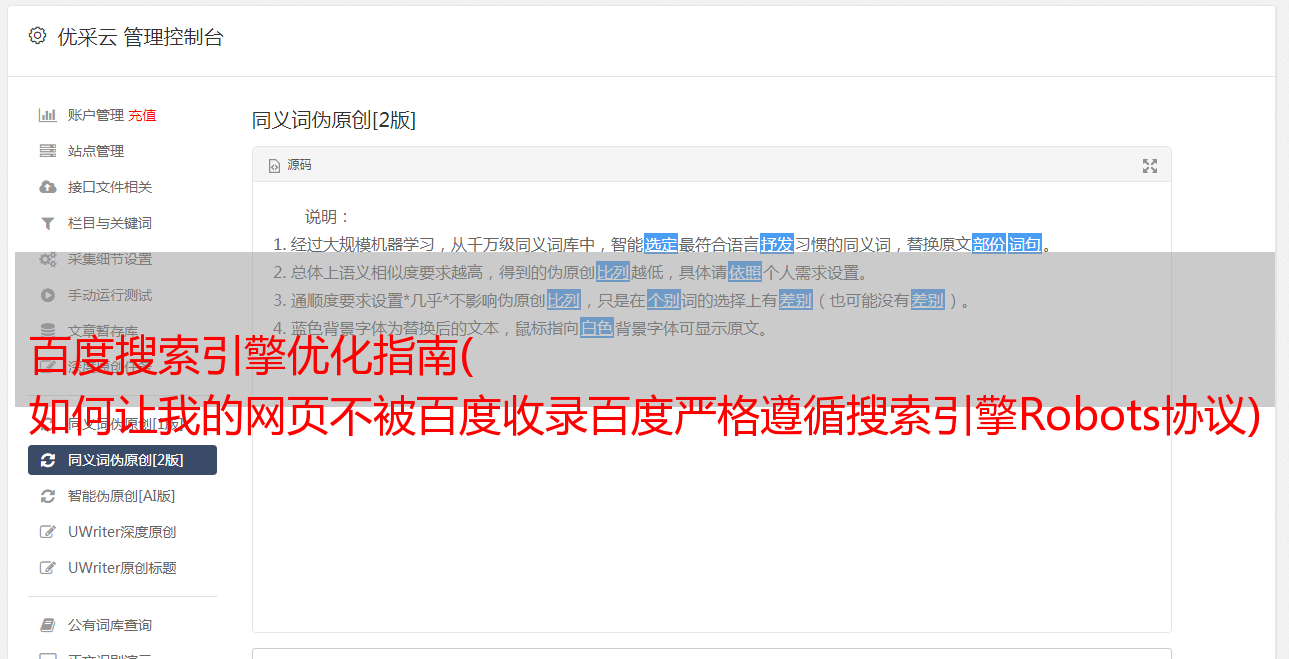 优采云 发布时间: 2022-03-12 10:21百度搜索引擎优化指南(