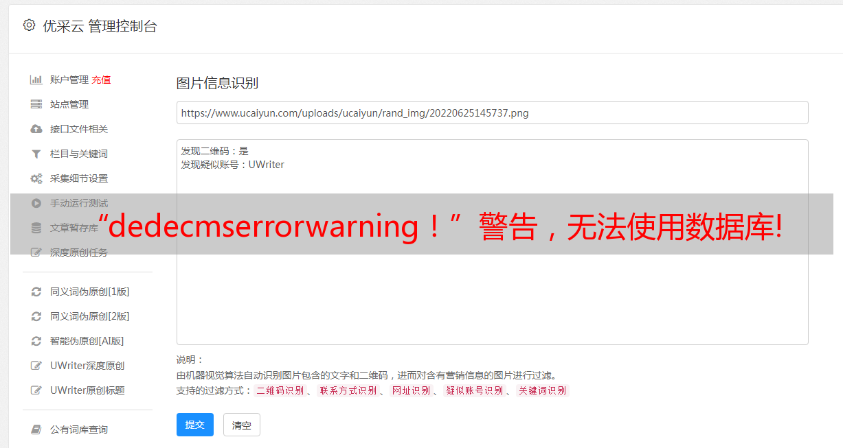优采云 发布时间: 2021-05-09 05:02“dedecmserrorwarning!”警告,无法使用数据库!