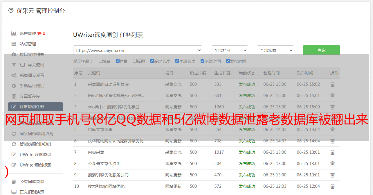 优采云 发布时间: 2022-03-12 22:18网页抓取手机号(8亿QQ数据和5亿微博数据泄露老数据库被翻出来